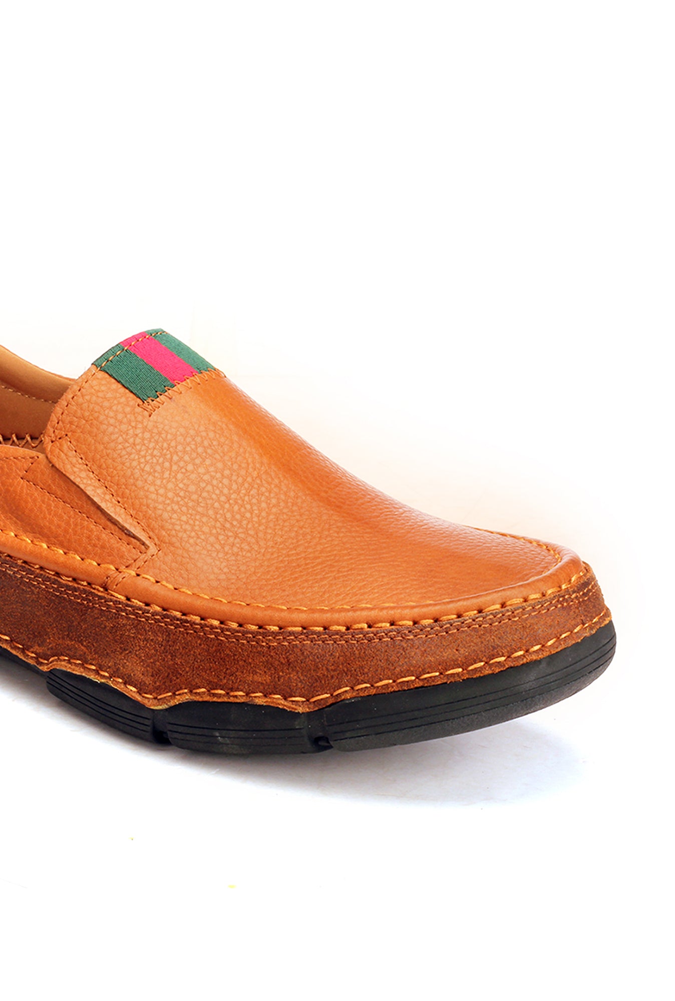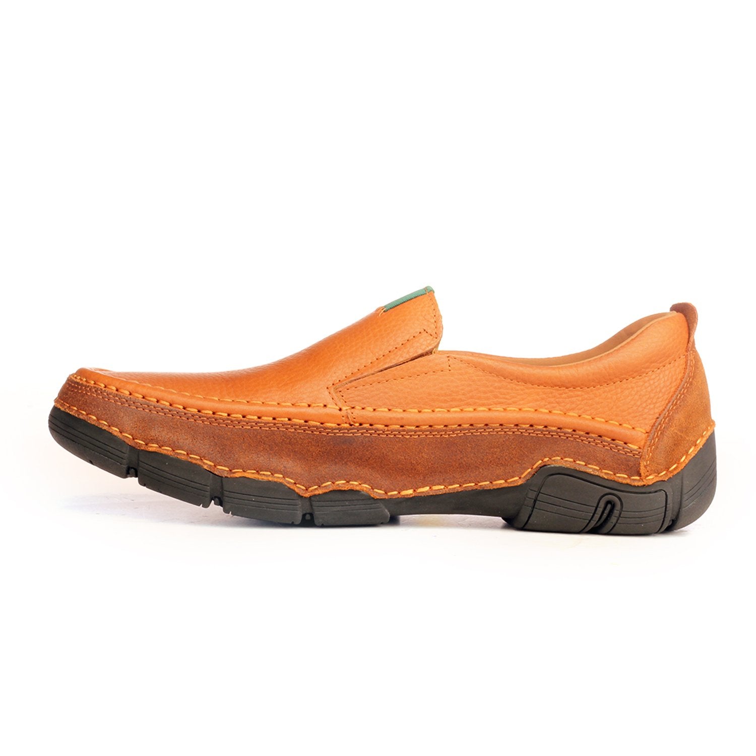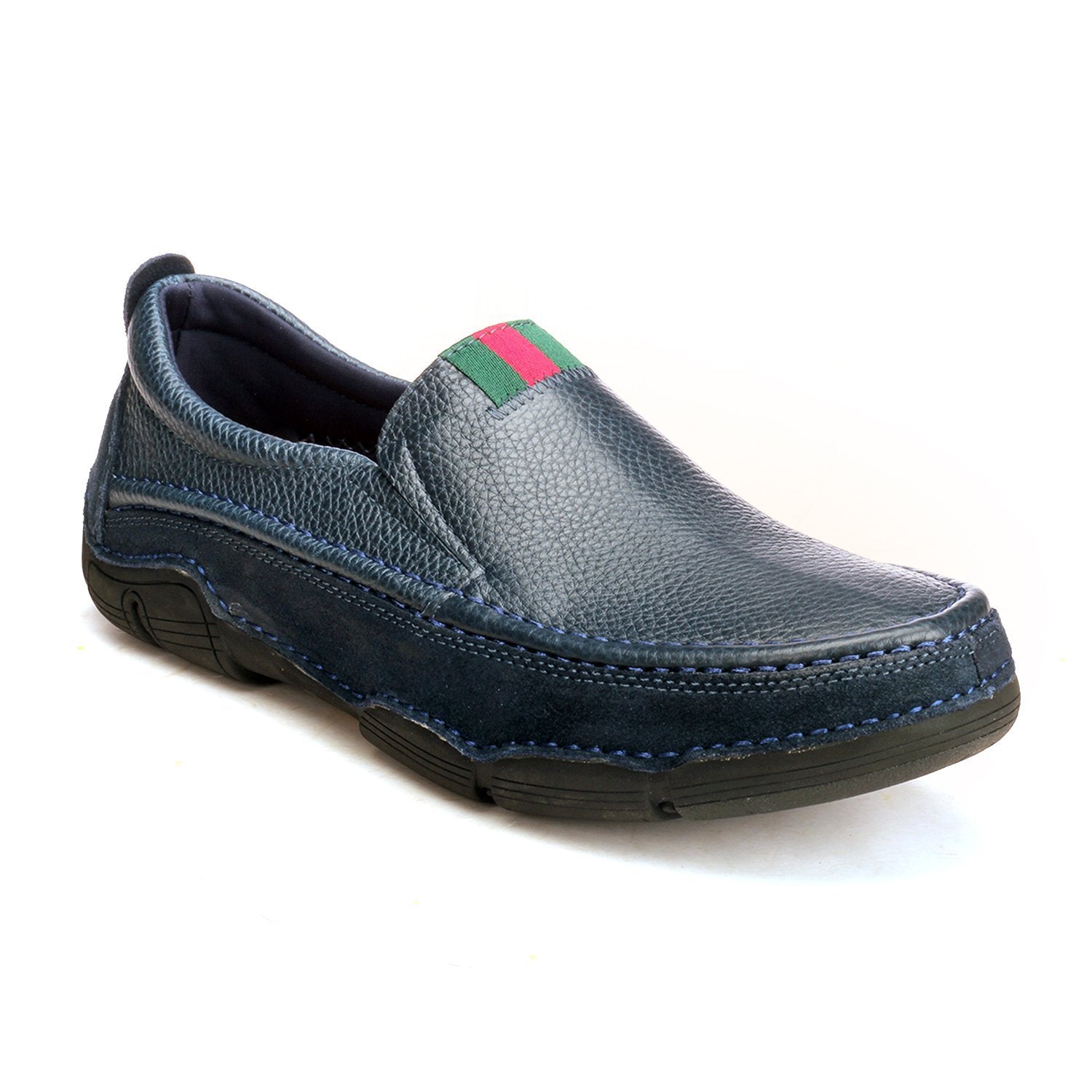 Redefine all day comfort with these thick cushioned sole casual moccasins, featuring a minimalist canvas tab on the upper. The lightly textured upper adds that contemporary leather inspired characteristic to the shoe, making it a great choice for those weekend dos. With its super cushioned sole featuring a heel pad and it’s comfort collar for enhanced ankle support, you don’t have to worry about long wear woes attached with full shoes. Ideal for those on the move for most of the day with its dedicated driver’s heel, this pair also is a great gift for those who like their semi-formal outfits. Match these with a pair of well fitted trousers and a formal shirt tucked in with a wrinkle free leather belt.