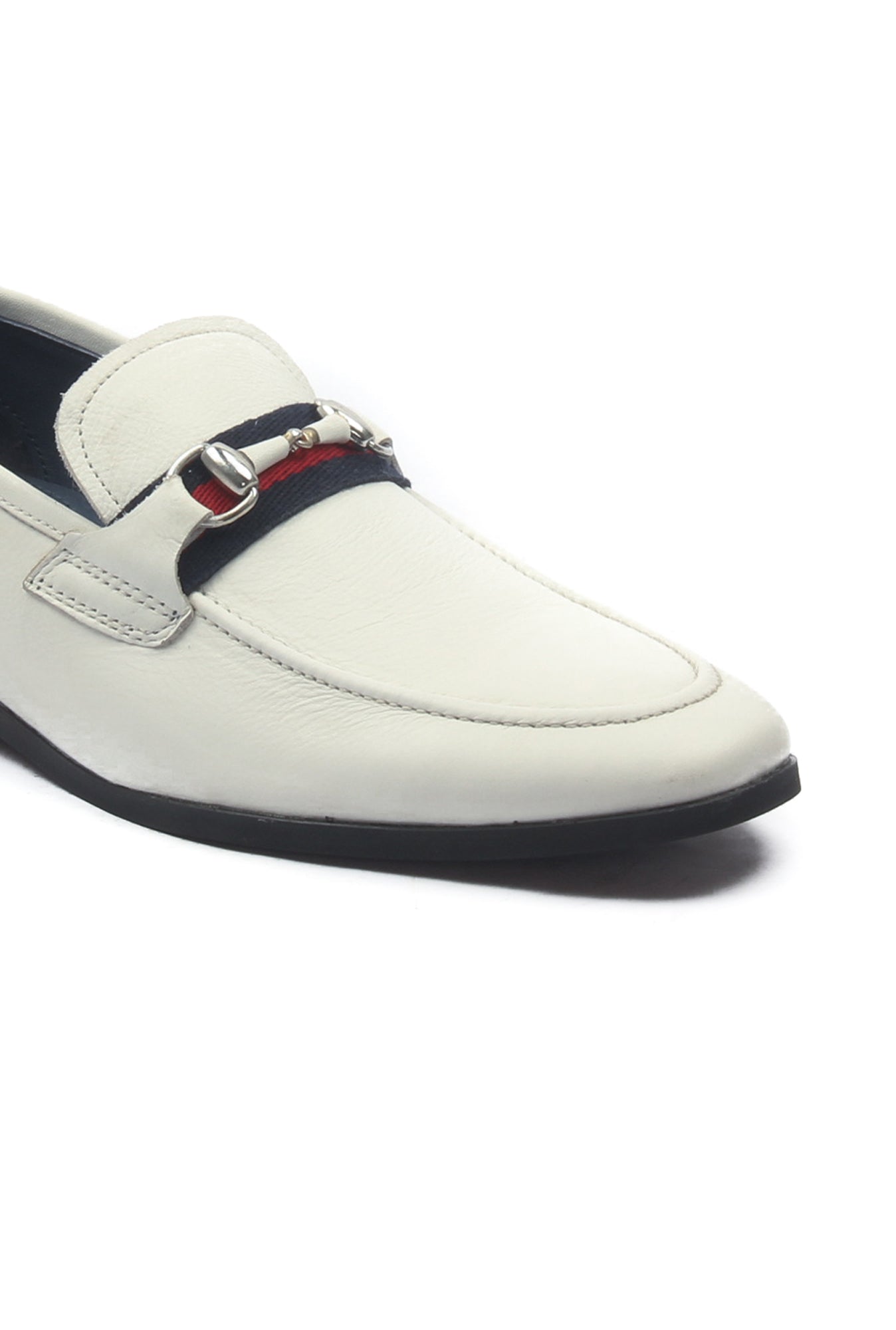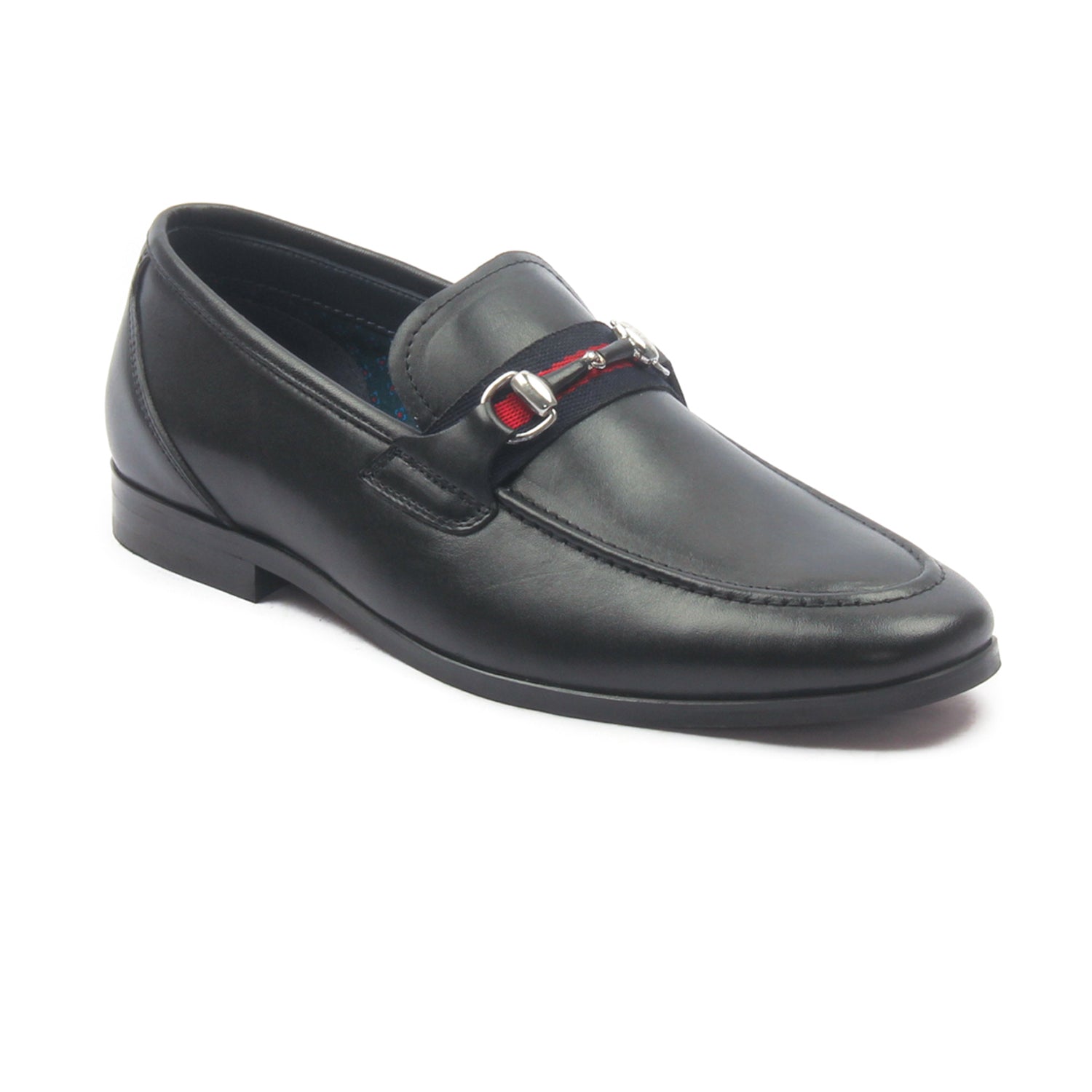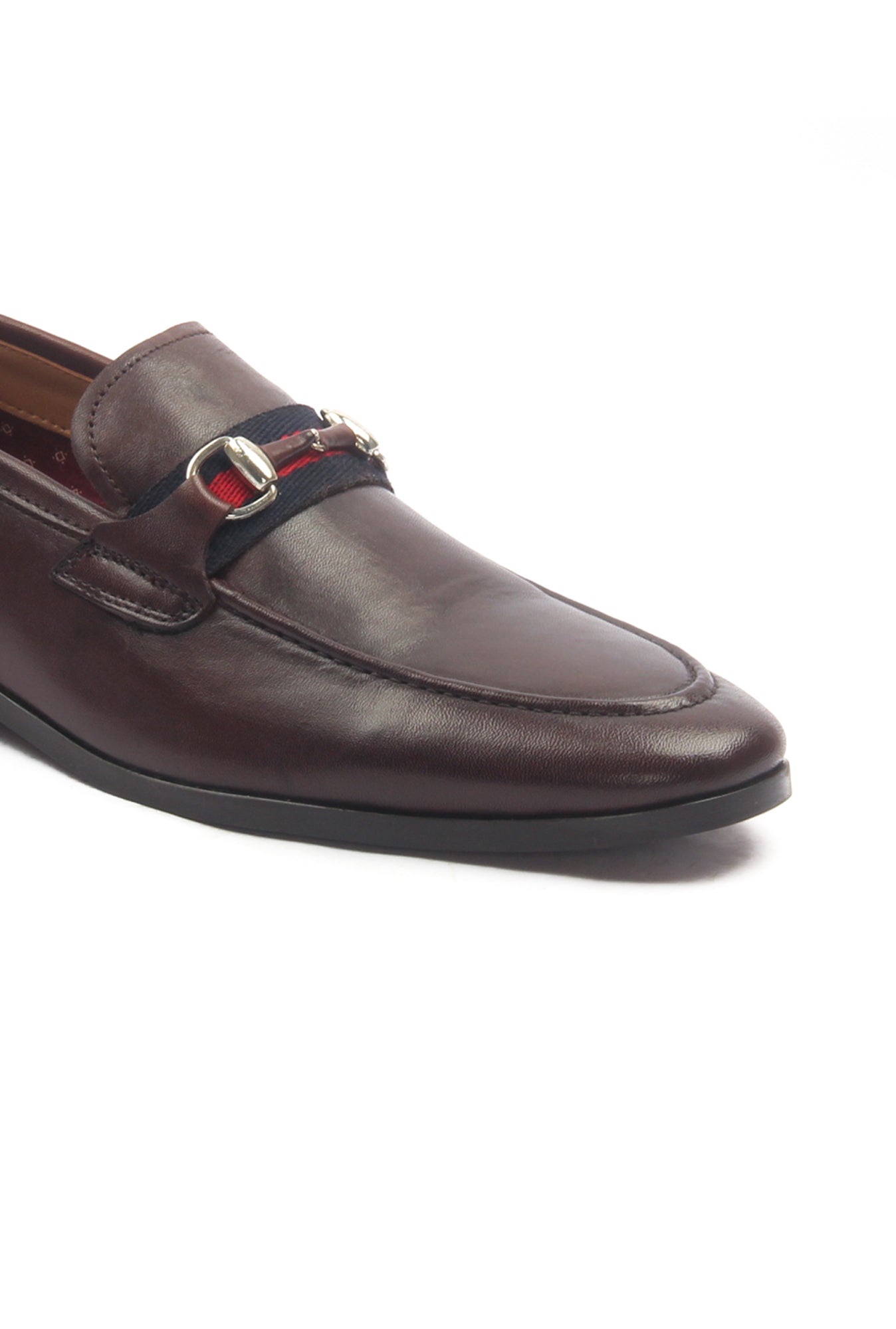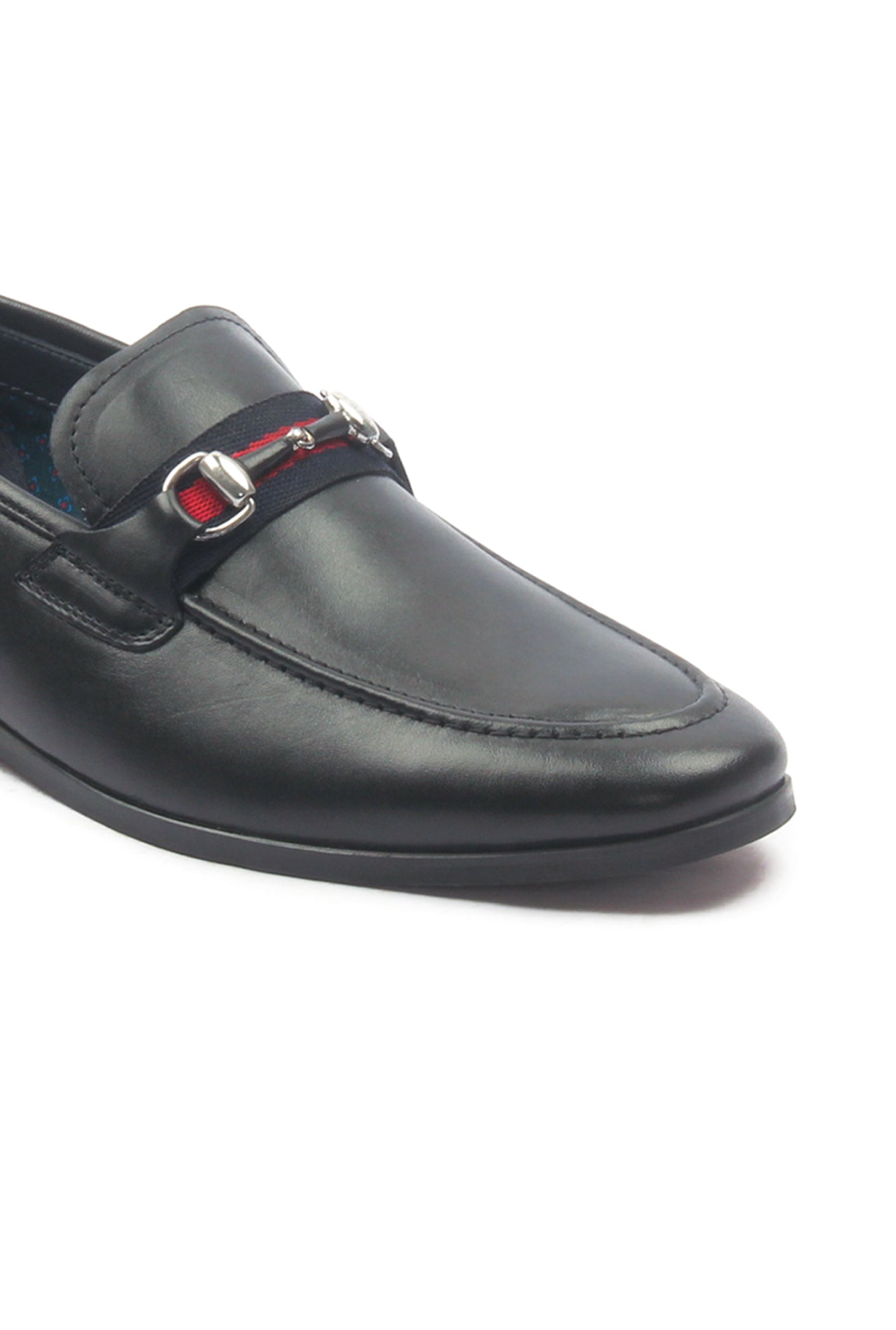 Define your own signature style with this pair of metal trim round toe moccasins. The smooth leather upper shines through with the metal trim styled perfectly for a gentleman with the canvas trim in the background. Featuring a heel biscuit with a leather lining that allows for long wear comfort, these shoes make for a quirky choice for your next social event. The metal trim adds to the gentlemen’s style that is personified with this pair. Add to it the low heeled sole with anti-skid features and you know you’re ready to take on your day like a superhero. Match this smooth finished leather pair with a smooth finished leather belt to upgrade your outfit from semi-casual to formal.
