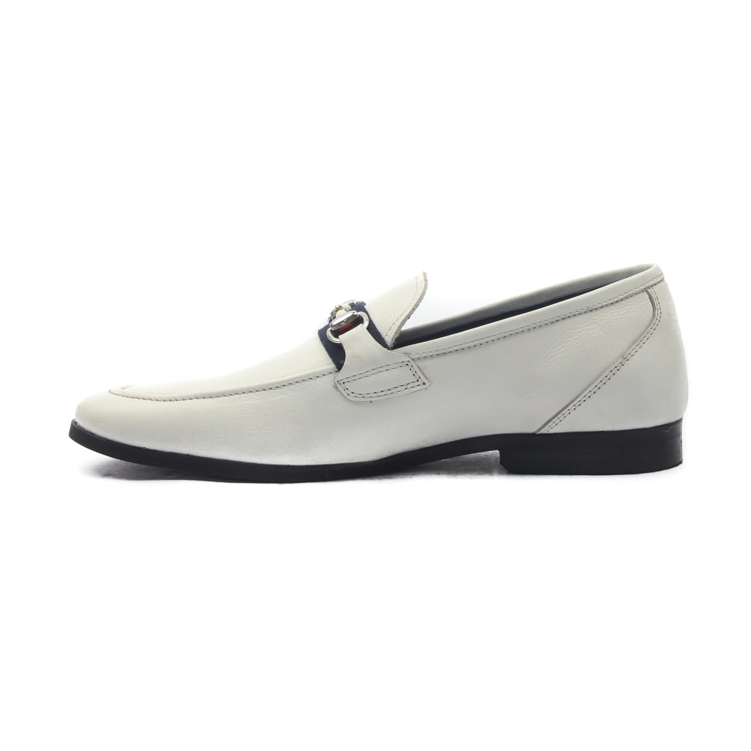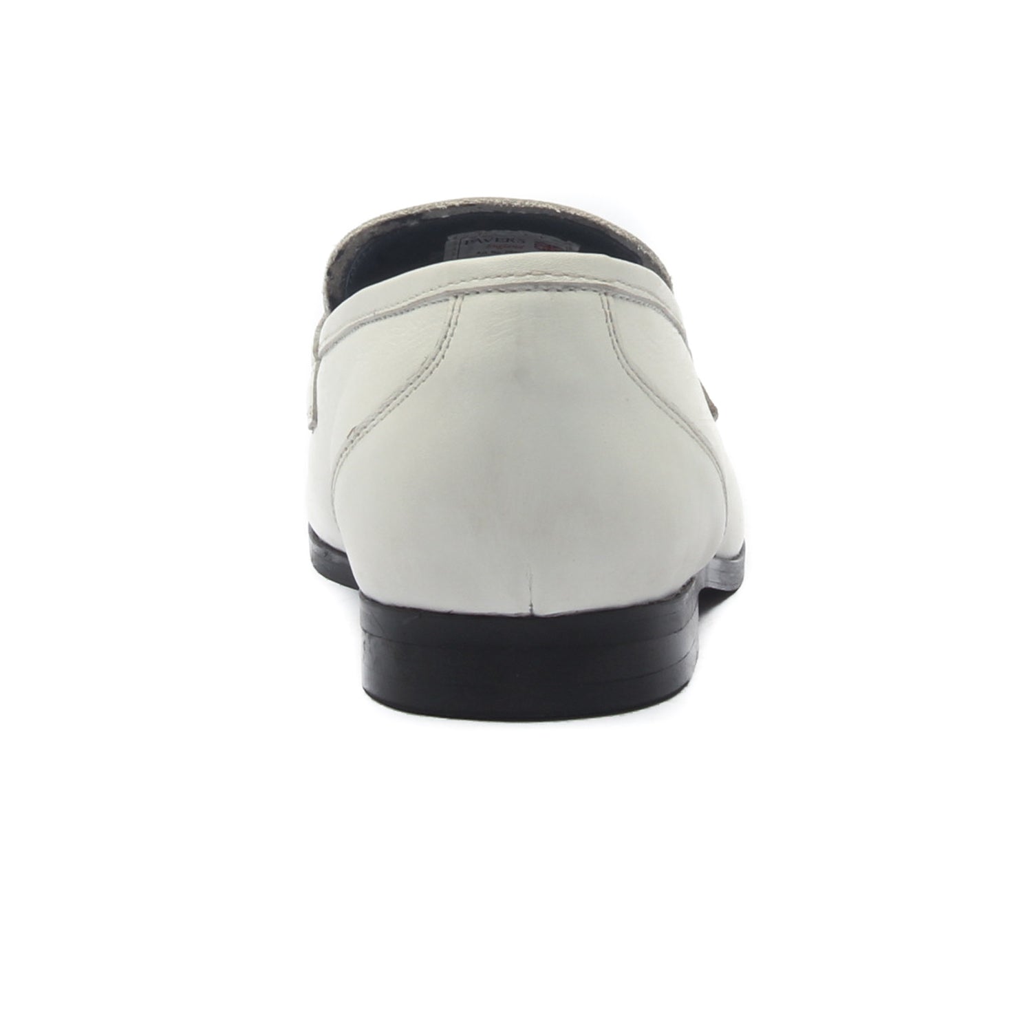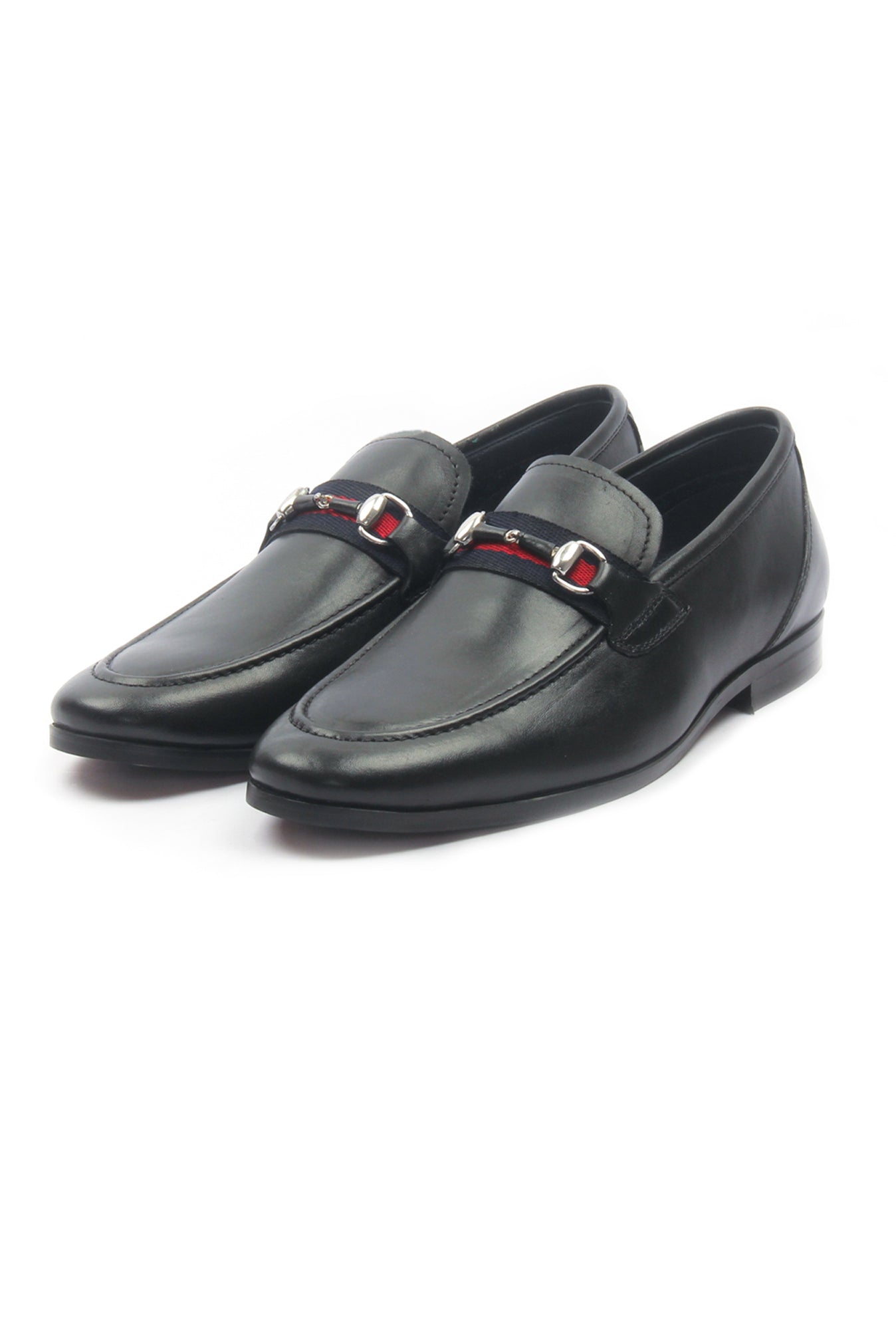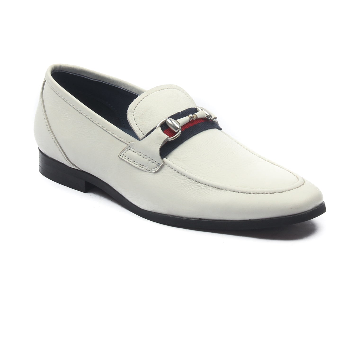 Define your own signature style with this pair of metal trim round toe moccasins. The smooth leather upper shines through with the metal trim styled perfectly for a gentleman with the canvas trim in the background. Featuring a heel biscuit with a leather lining that allows for long wear comfort, these shoes make for a quirky choice for your next social event. The metal trim adds to the gentlemen’s style that is personified with this pair. Add to it the low heeled sole with anti-skid features and you know you’re ready to take on your day like a superhero. Match this smooth finished leather pair with a smooth finished leather belt to upgrade your outfit from semi-casual to formal.