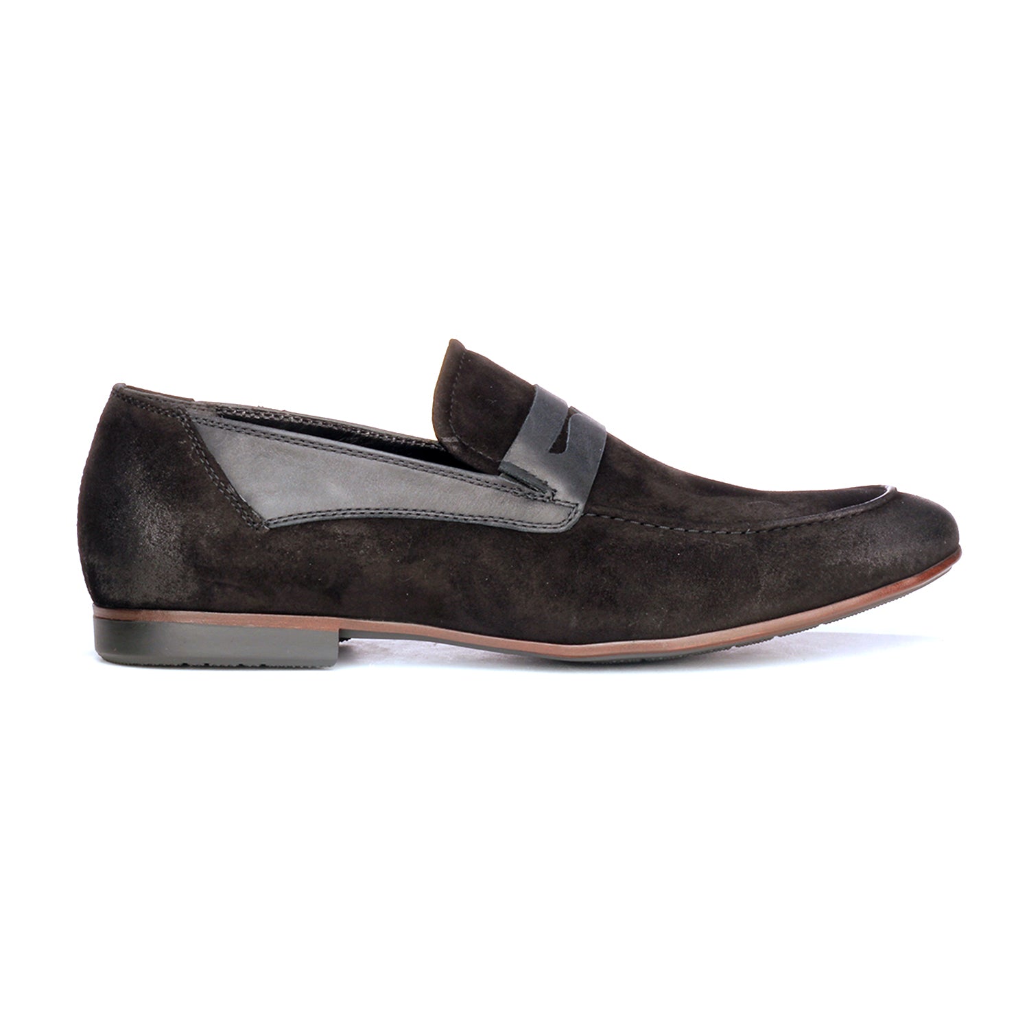 Handcrafted from premium quality suede, these penny loafers feature an apron toe design and a decorative slotted leather strap over on the top. The soft insole and snug fit of these loafers are perfect for spending long hours on the move.