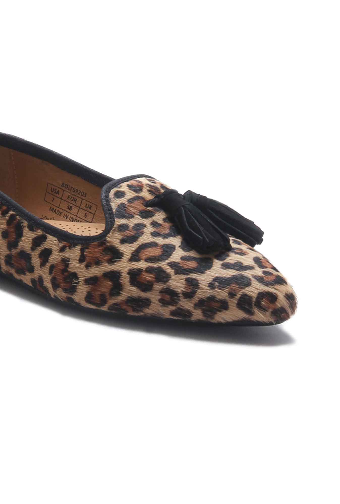 Let your feet step in for a wild night out with these Leopard Print Ballerinas that immediately elevate your little black dresses. The cushioned footbed with a perforated anchor pad supports all your dancing dreams, one step at a time. The animal printed upper is just a reason for envy, decorated with minimalist tassels at the top. The pointed toe silhouette makes this pair a perfect choice for those nights out as it instantly makes the most simple outfits look more formal, especially for a night out. Add a nice boxy silhouette sling bag for your night out and you’re ready to own every restaurant you walk into.